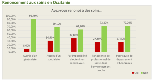 Les déserts médicaux sont une réalité : 37 % des retraités que nous avons interrogé dans notre baromètre nous ont dit avoir renoncé à des soins faute d’avoir obtenu un rendez-vous, 30 % parce qu’il n’y a pas de praticien dans leur environnement proche.
