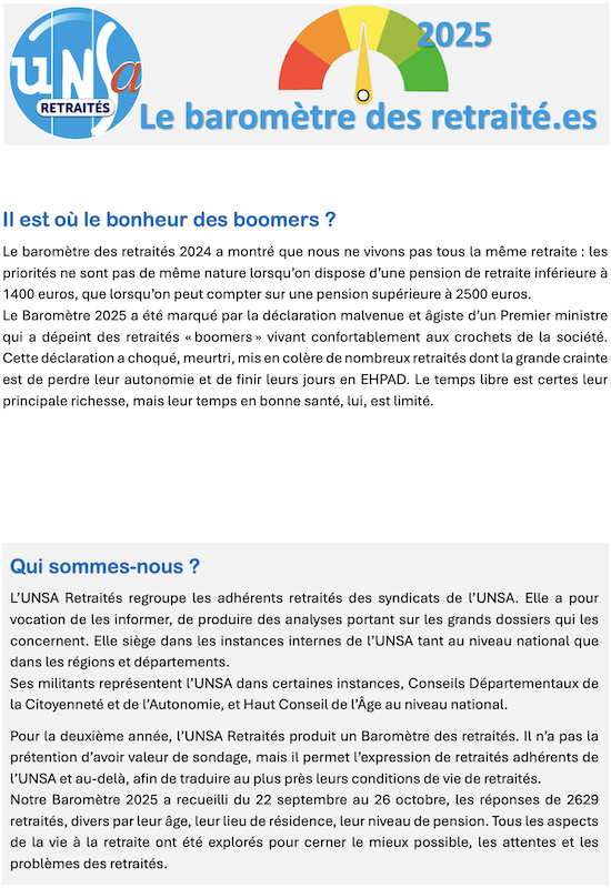 Accueil > Vie de l’UNSA > Baromètre des retraités 2025 : on vous dit tout !