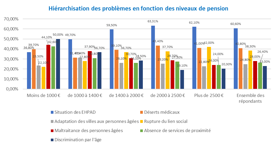 La discrimination par l’âge, les problèmes de maltraitance et la difficulté d’accéder à des services et à des documents administratifs sont les problèmes évoqués prioritairement par les plus modestes.