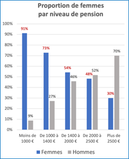 Conclusion, les femmes sont sur-représentées parmi les retraités avec des faibles niveaux de pension.