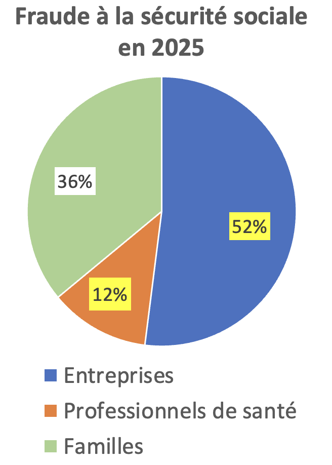 Si le rapport attribue 36% des sommes détournées à la fraude aux prestations, 52% sont imputables aux employeurs (non recouvrement de cotisations) et 12 % aux professionnels de santé.