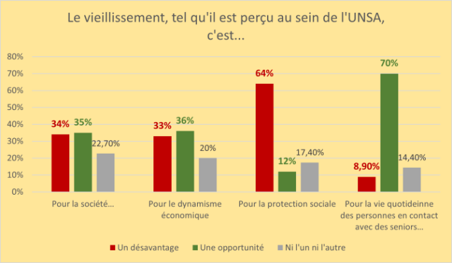 – Pour la vie quotidienne des personnes qui sont en contact avec des 65ans et plus : 70% une opportunité, 8,9% un désavantage et 14 ?4% ni l’un ni l’autre.