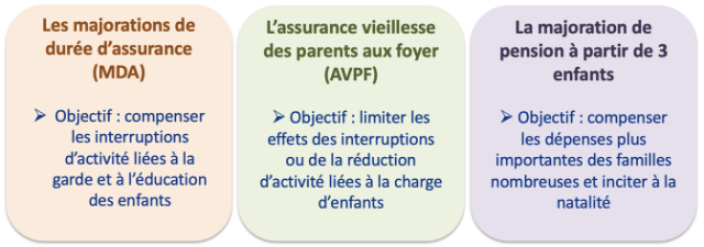 Les droits familiaux ont pour objectif de compenser les effets de la maternité et des enfants sur la carrière des femmes.