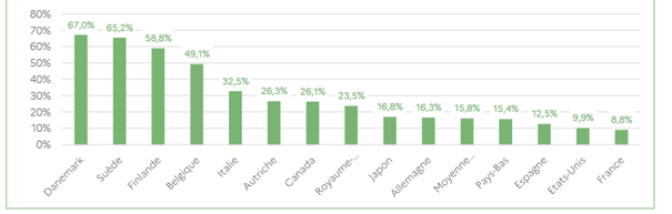 Comme on peut le voir, il y a une érosion à tous les âges et particulièrement aux âges élevés, mais là, il s’agit bien souvent de décès. Par rapport aux pays de l’OCDE la France est bonne dernière tous âges confondus, mais dans certains pays l’adhésion syndicale est obligatoire et permet de toucher les allocations chômage par exemple.