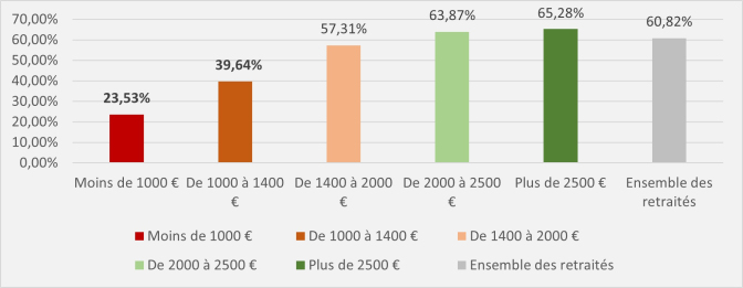 Dans la tranche des retraités percevant une pension entre 1000 et 1400 €, un sur dix déclare avoir une activité professionnelle en complément de sa retraite par nécessité économique.