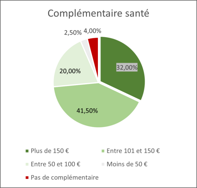 Pourtant, 73% d’entre eux dépensent plus de 100 € par mois pour leurs frais de complémentaires santé et 32%, plus de 150 €. Et 4% ne disposent pas d’une complémentaire santé.