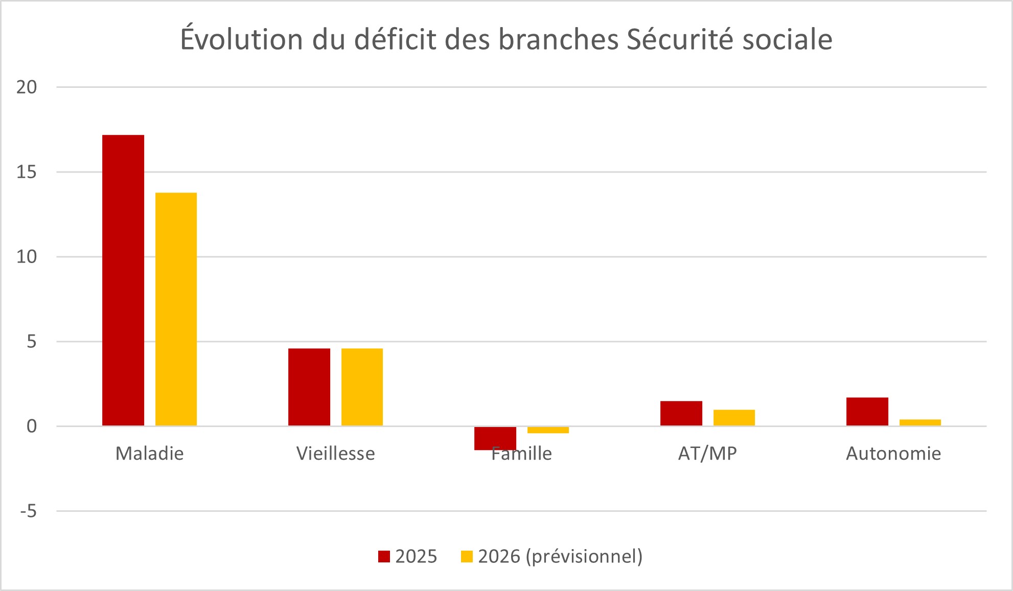 Si la loi de financement de la Sécurité sociale n’avait pas été adoptée, le déficit aurait été plus élevé de 9 milliards d’euros (Solde tendanciel des comptes de la Sécurité sociale à -28.7 milliards d’euros pour 2026 sans mesures correctives).