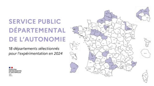 Le Service Public Départemental de l’Autonomie va être expérimenté dans 18 départements au cours de l’année 2024. Les candidats retenus sont les Alpes-Maritimes, l’Aveyron, la Corrèze, le Finistère, la Gironde, la Guyane, les Hauts-de-Seine, l’Hérault, le Loir-et-Cher, la Mayenne, la Meurthe-et-Moselle, le Nord, le Pas-de-Calais, la Sarthe, la Seine-Maritime, la Seine-Saint-Denis, la Somme, les Yvelines.